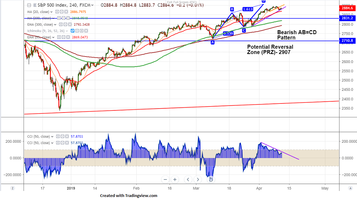 S&P500 is trading in narrow range after jump of more than 3.5% in past one week. It hits high of 2891 and is currently trading around 2881.70. The global growth forecast cut by IMF and escalation of trade tension between US and Europe is slightly putting pressure on global stock markets. Markets eye Fed meeting minutes and EU Brexit summit for further direction.
