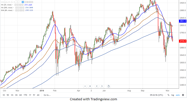 S&P500 is trading weak after a minor jump of 40 points from the low 2719. The index has broken the yesterday’s low and declined till 2711 at the time of writing. S&P500 has formed temporary bottom at 2603 and shown a more than 8% till 2818. It is currently trading around 2712.