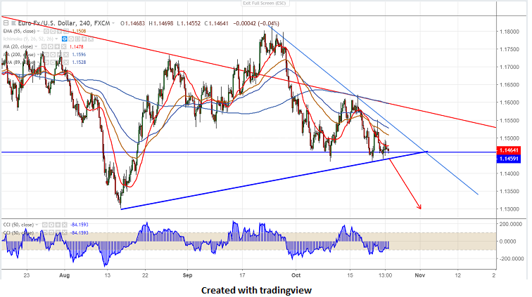 EURUSD is trading weak below 1.1500 level after European Commission expelled Italian budget proposal. Italian 10 year bond yield jumped more than 10% and spread between German bund and Italy has increased to 320 basis point. The pair hits intraday low of 1.1552. It is currently trading around 1.14644.
