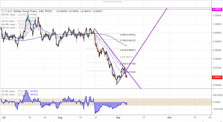 On the lower side , any break below 0.9690 will drag the pair down till0.9650/0.9600. Swiss franc is trading higher against all major on account safe haven demand due to trade war worries between US- China ,NAFTA and Emerging market turmoil.