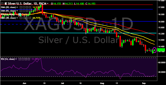We prefer to take short position on XAG/USD around $14.20, stop loss $14.28 and target of $13.98.