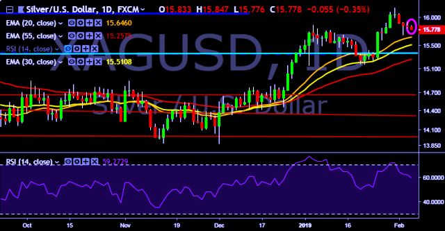 We prefer to take short position on XAG/USD around $15.79, stop loss $15.85 and target of $15.67.