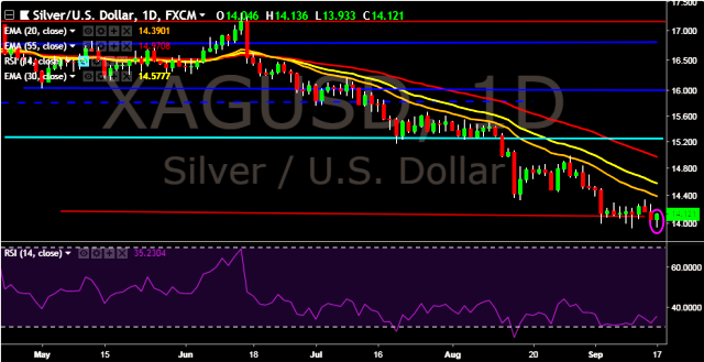 We prefer to take long position on XAG/USD around $14.10, stop loss $13.93 and target of $14.34/$14.49.