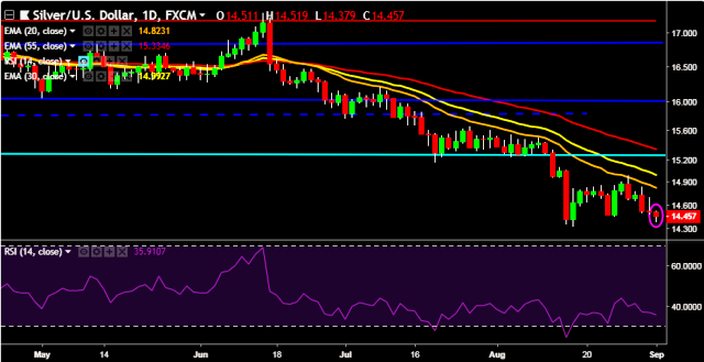 We prefer to take short position on XAG/USD around $14.50, stop loss $14.70 and target of $14.32/$14.18.