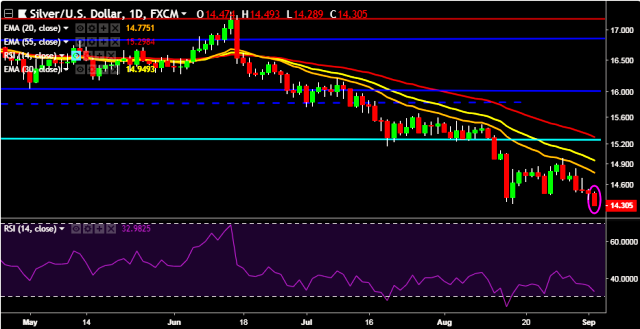 We prefer to take short position on XAG/USD around $14.35, stop loss $14.50 and target of $13.99.
