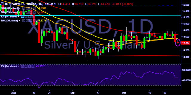 We prefer to take short position on XAG/USD only below $14.38, stop loss $14.52 and target of $14.22/$14.05.