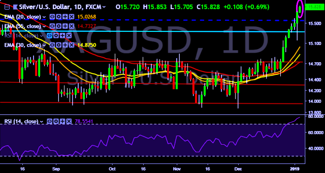 We prefer to take long position on XAG/USD around $15.78, stop loss $15.68 and target of $15.96/$16.04.