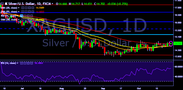 We prefer to take long position on XAG/USD only above $14.72, stop loss $14.60 and target of $14.98.