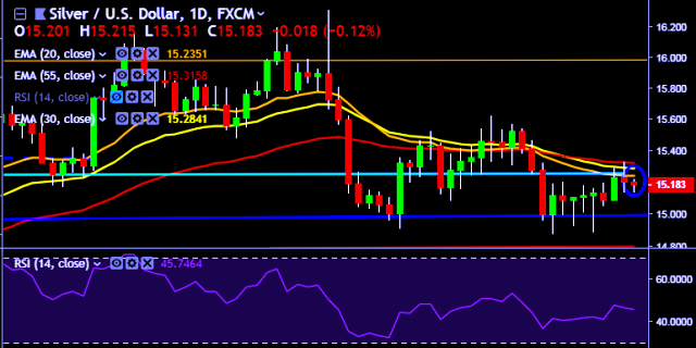 - XAG/USD is currently trading around $15.18 marks.