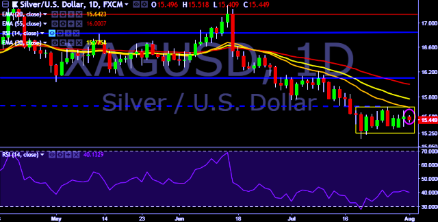 We prefer to take long position on XAG/USD around $15.35, stop loss $15.20 and target of $15.65/$15.85.