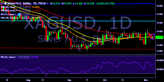 We prefer to take long position on XAG/USD only above $14.60, stop loss $14.45 and target of $14.98.