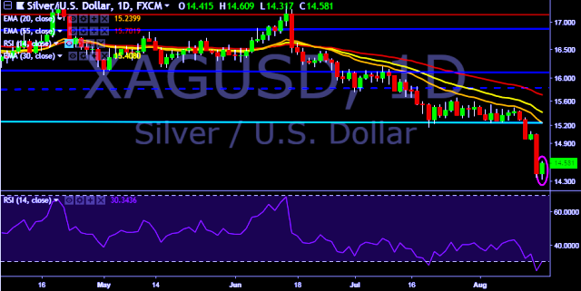 We prefer to take long position on XAG/USD around $14.58, stop loss $14.45 and target of $14.77.