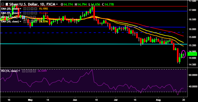 - XAG/USD is currently trading around $14.74 marks.