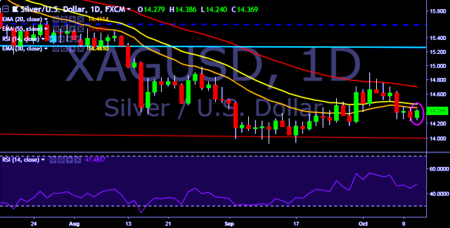 We prefer to take long position on XAG/USD around $14.32, stop loss $14.21 and target of $14.65.