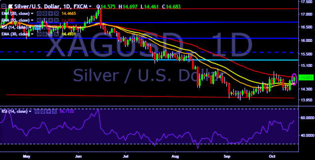 We prefer to take long position on XAG/USD around $14.65, stop loss $14.45 and target of $14.82/$14.98.