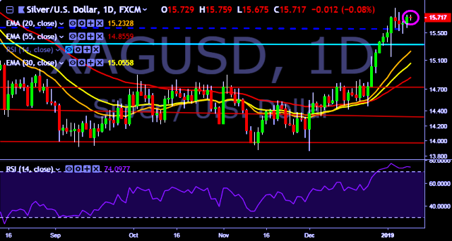 We prefer to take long position on XAG/USD around $15.68, stop loss $15.58 and target of $15.96/$16.04.