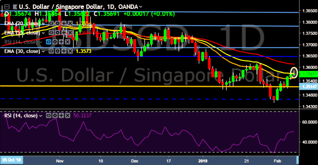 We prefer to take long position on USD/SGD only above 1.3590, stop loss at 1.3538 and target of 1.3615/1.3672.