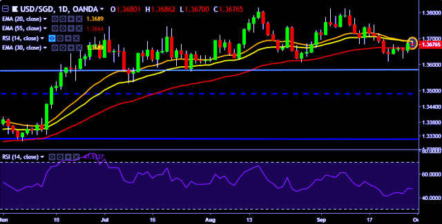- USD/SGD is currently trading around 1.3677 marks.