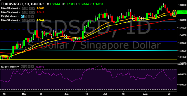 We prefer to take long position on USD/SGD around 1.3690, stop loss at 1.3650 and target of 1.3775.