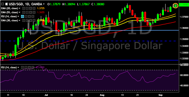 - USD/SGD is currently trading around 1.3794 marks.
