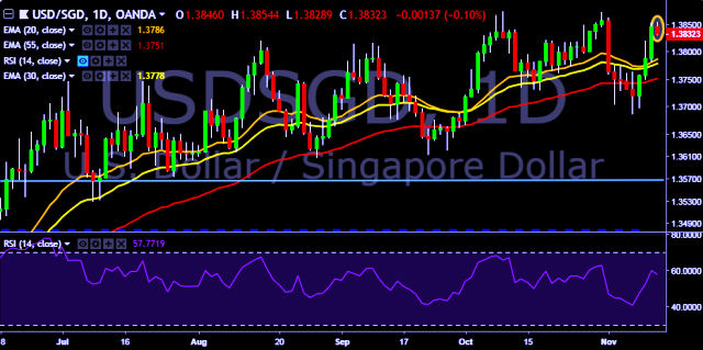 We prefer to take long position on USD/SGD around 1.3810, stop loss at 1.3790 and target of 1.3872.