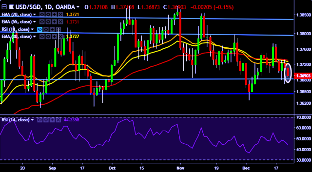 We prefer to take short position on USD/SGD around 1.3700, stop loss at 1.3740 and target of 1.3668/1.3620.