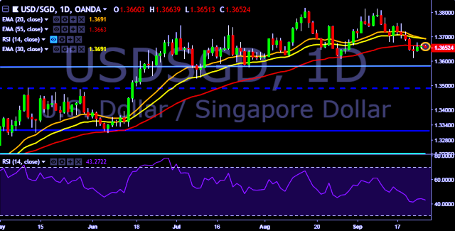 We prefer to take short position on USD/SGD around 1.3665, stop loss at 1.3690 and target of 1.3607.