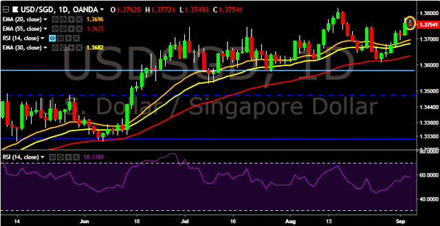 - USD/SGD is currently trading around 1.3751 marks.