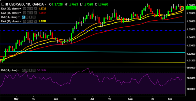 We prefer to take short position on USD/SGD only below 1.3752, stop loss at 1.3820 and target of 1.3690.
