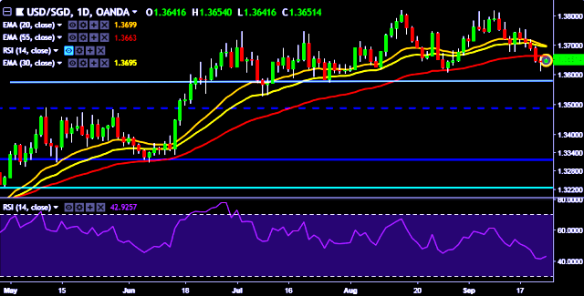 We prefer to take long position on USD/SGD only above 1.3690, stop loss at 1.3640 and target of 1.3755.