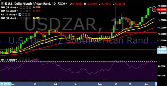 We prefer to take short position on USD/ZAR only below 15.02, stop loss at 15.35 and target of 14.82/14.70.