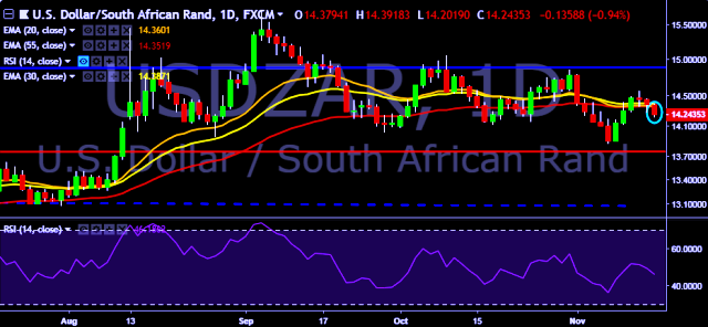 We prefer to take short position on USD/ZAR around 14.25, stop loss at 14.50 and target of 14.02/13.86.