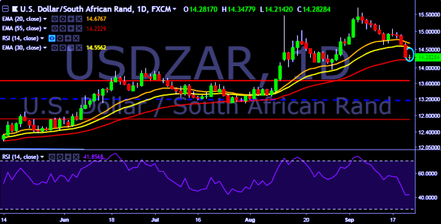 We prefer to take short position on USD/ZAR around 14.30, stop loss at 14.50 and target of 14.05/13.82.