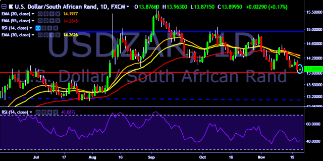 We prefer to take short position on USD/ZAR only below 13.87, stop loss at 14.02 and target of 13.68.