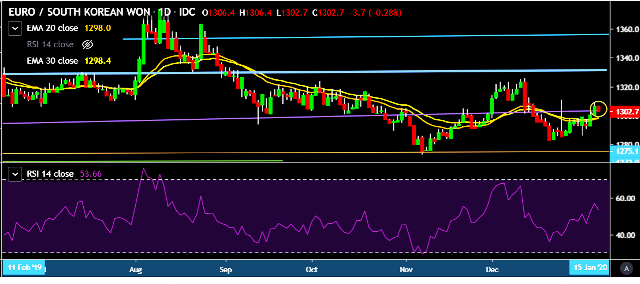 - EUR/KRW is currently trading around 1,303 mark.