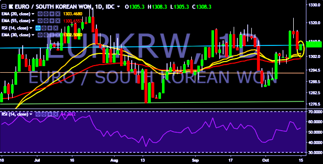 We prefer to take long position on EUR/KRW around 1,306, stop loss at 1,297 and target of 1,315/1,327.