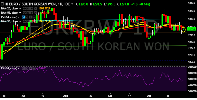 We prefer to take long position on EUR/KRW only above 1,302, stop loss at 1,294 and target of 1,315.