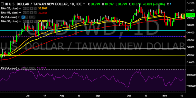 We prefer to take long position on USD/TWD around 30.90, stop loss at 30.70 and target of 31.04/31.18/31.42.