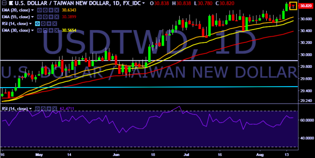 We prefer to take long position on USD/TWD only above 30.90, stop loss at 30.70 and target of 31.17.