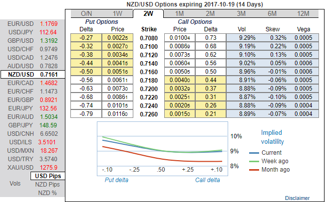 Also be noted that at spot reference: 0.7160, the 2m skews are targeting OTM put strikes at 0.6950, whereas 2w positive skewness is still showing hedgers’ interest on ATM stikes.