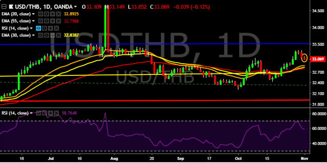 We prefer to take short position on USD/THB only below 33.02, stop loss 33.18 and target of 32.90/32.77.