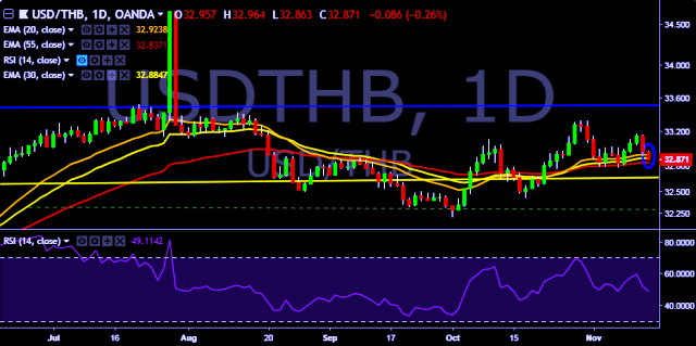 We prefer to take short position on USD/THB only below 32.78, stop loss 33.02 and target of 32.42.