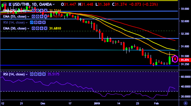 We prefer to take short position on USD/THB around 31.38, stop loss at 31.50 and target of 31.22 mark.