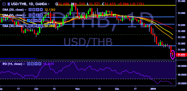 We prefer to take short position on USD/THB around 31.65, stop loss at 31.93 and target of 31.24.