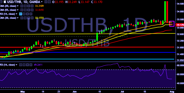 We prefer to take short position on USD/THB around 33.20, stop loss at 33.40 and target of 33.02/32.90.