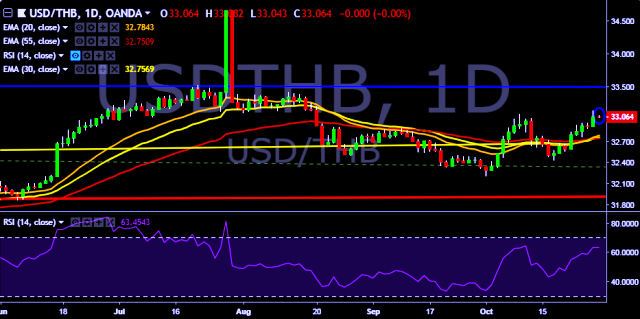 We prefer to take long position on USD/THB around 33.05, stop loss 32.90 and target of 33.20/33.37.