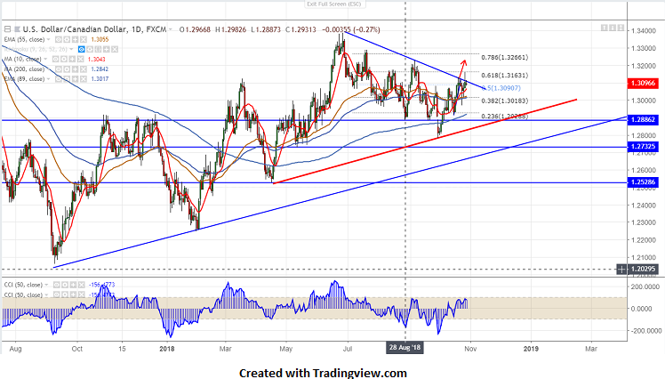 USD/CAD has lost more than 100 pips from the high of 1.31592 on account of minor recovery in crude oil prices. The pair showed a major decline till 1.30670.It is currently trading around 1.31003.