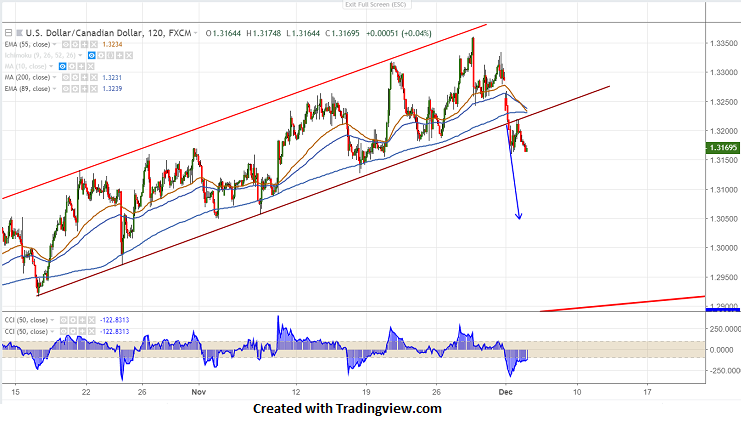 USD/CAD continues to trade weak after a minor recovery. The pair jumped till 1.32193 and started to decline. The main reason for Canadian dollar strength is broad based US dollar selling after US-China trade truce and slight improvement in crude oil prices. Markets eye Bank of Canada monetary policy tomorrow for further direction. Economist predict that Alberta oil cut could delay Bank of Canada rate hike. Loonie declined till 1.31640 at the time of writing and currently trading around 1.31706.