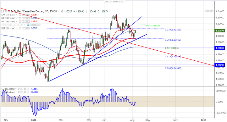 USD/CAD has shown a good recovery on more than 130 pips from the low of 1.29623 made on Aug 7th on rising geo political tensions between Canada and Saudi. Saudi Arabia has expelled Canadian ambassador ,froze new trade and investment dealing with Canada. Canada reacted to Saudi by suspending Saudi airlines to and from Toronto and removed almost 16000 students from universities and colleges.The pair hits high of 1.30946 and is currently trading around 1.30879.