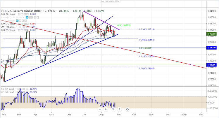 The NAFTA agreement and trade war tensions between US and Canada is putting pressure on Canadian dollar prices.
